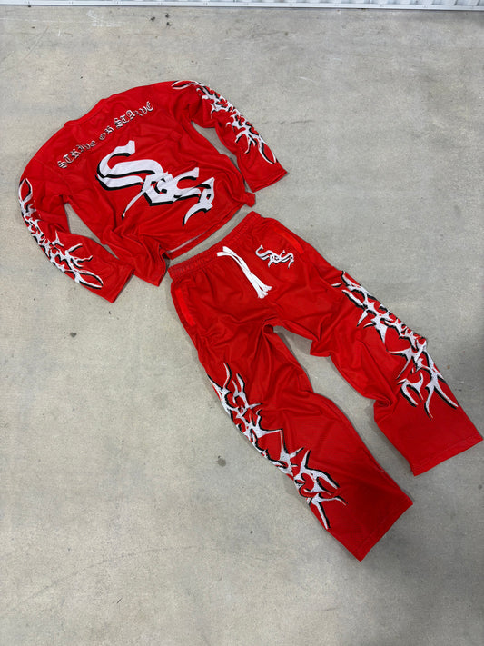 SAVE 48%Red "I AM SOS" Mesh Pants