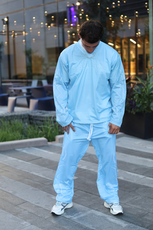SAVE 48%Sky Blue "I AM SOS" Mesh Pants